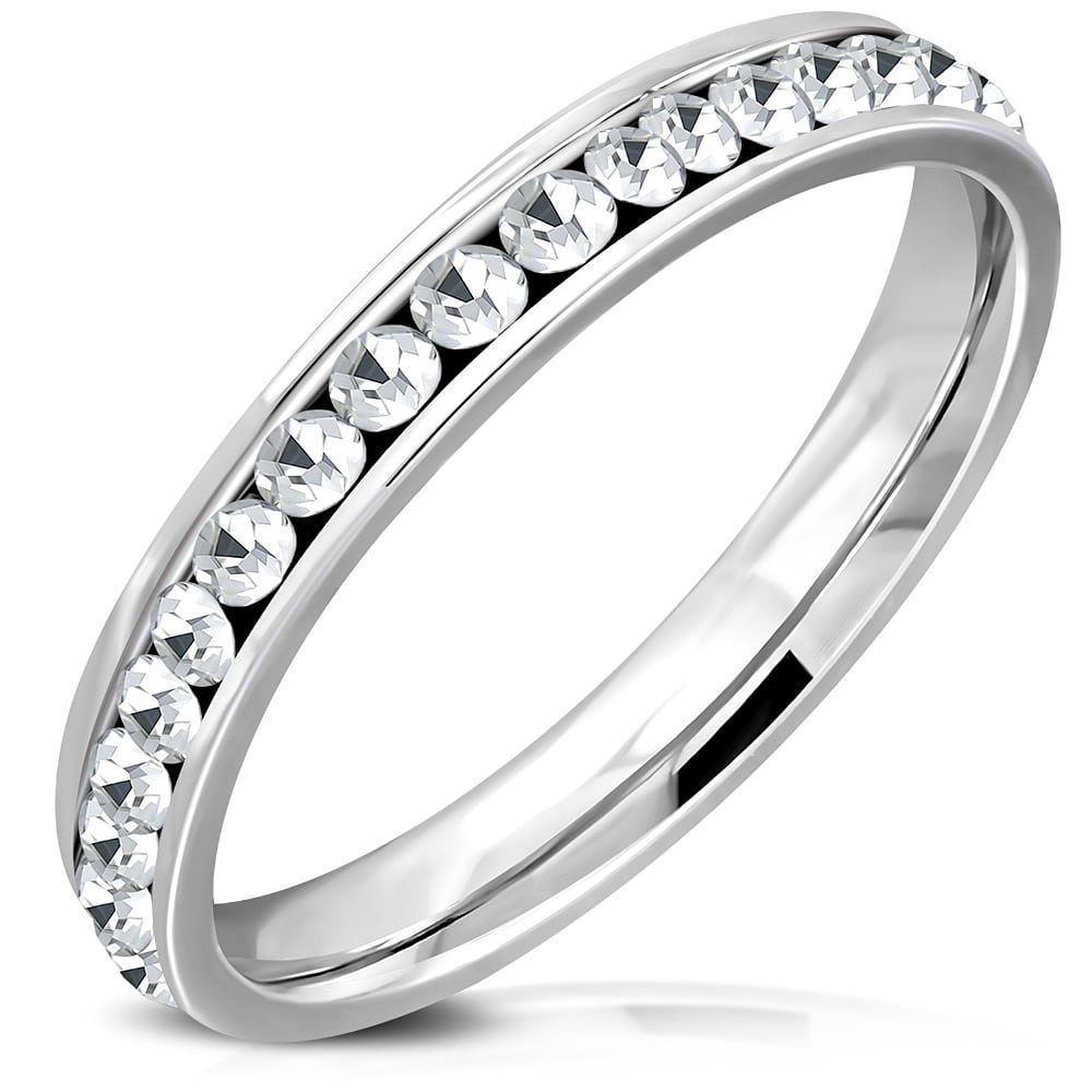 Sparkling Night kristályos ezüst színű nemesacél gyűrű