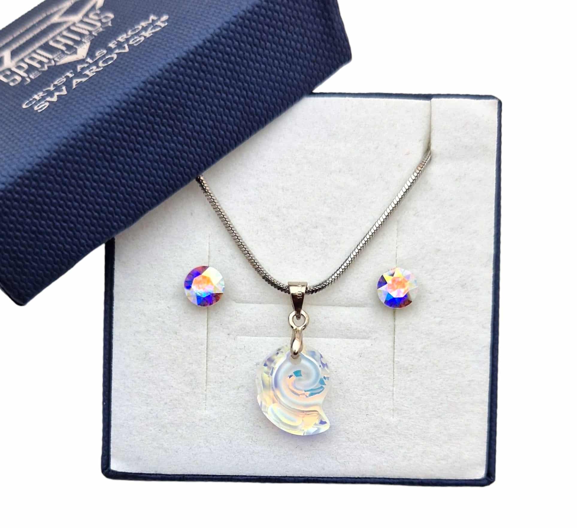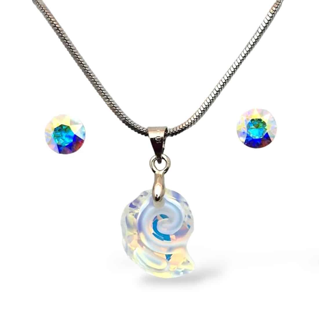 Limitált swarovski kristályos ékszerszett – Csiga 14 mm, Crystal AB ajándék díszdobozban