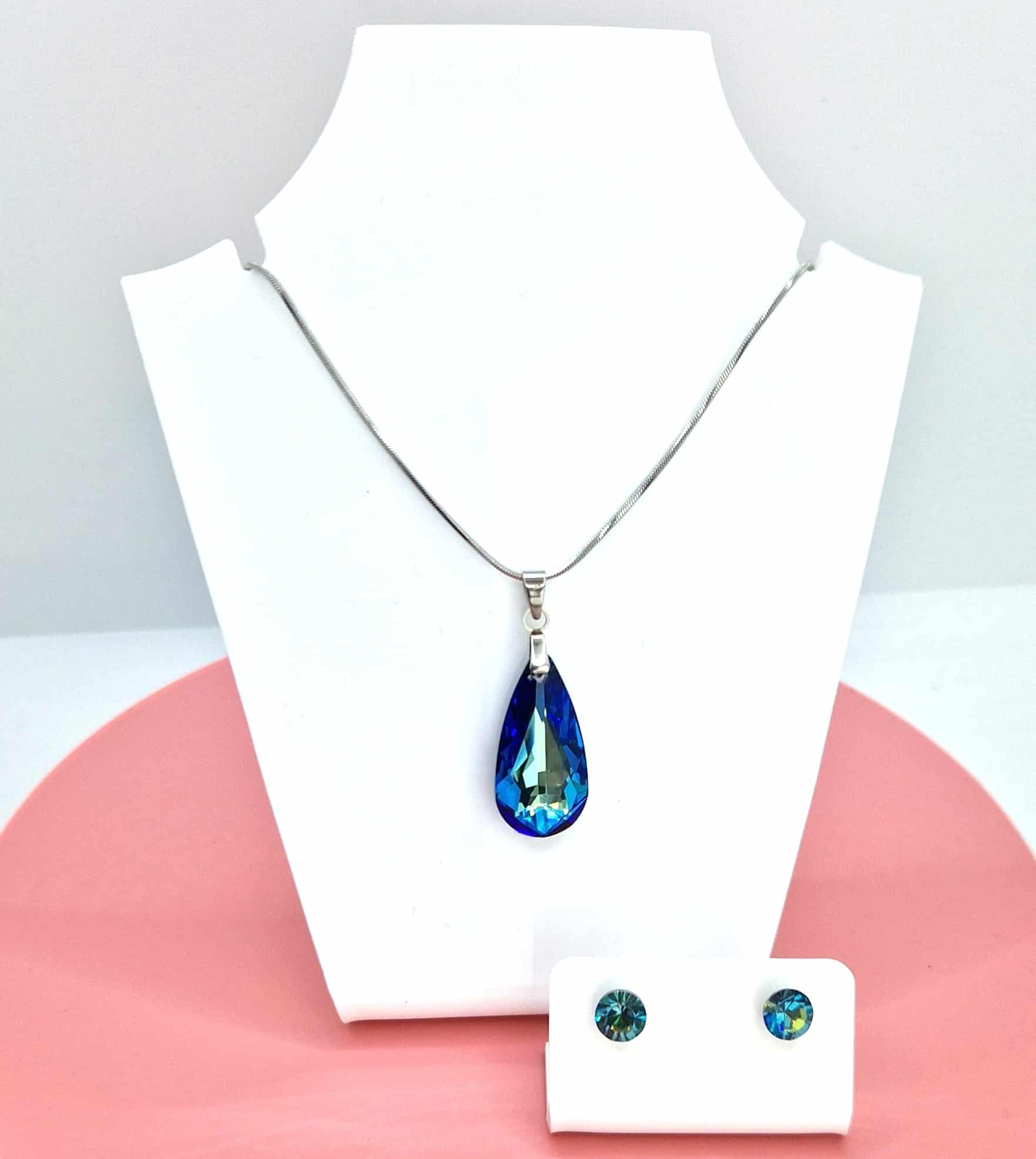 Swarovski kristályos ékszerszett – Körte 24 mm, Bermuda Blue