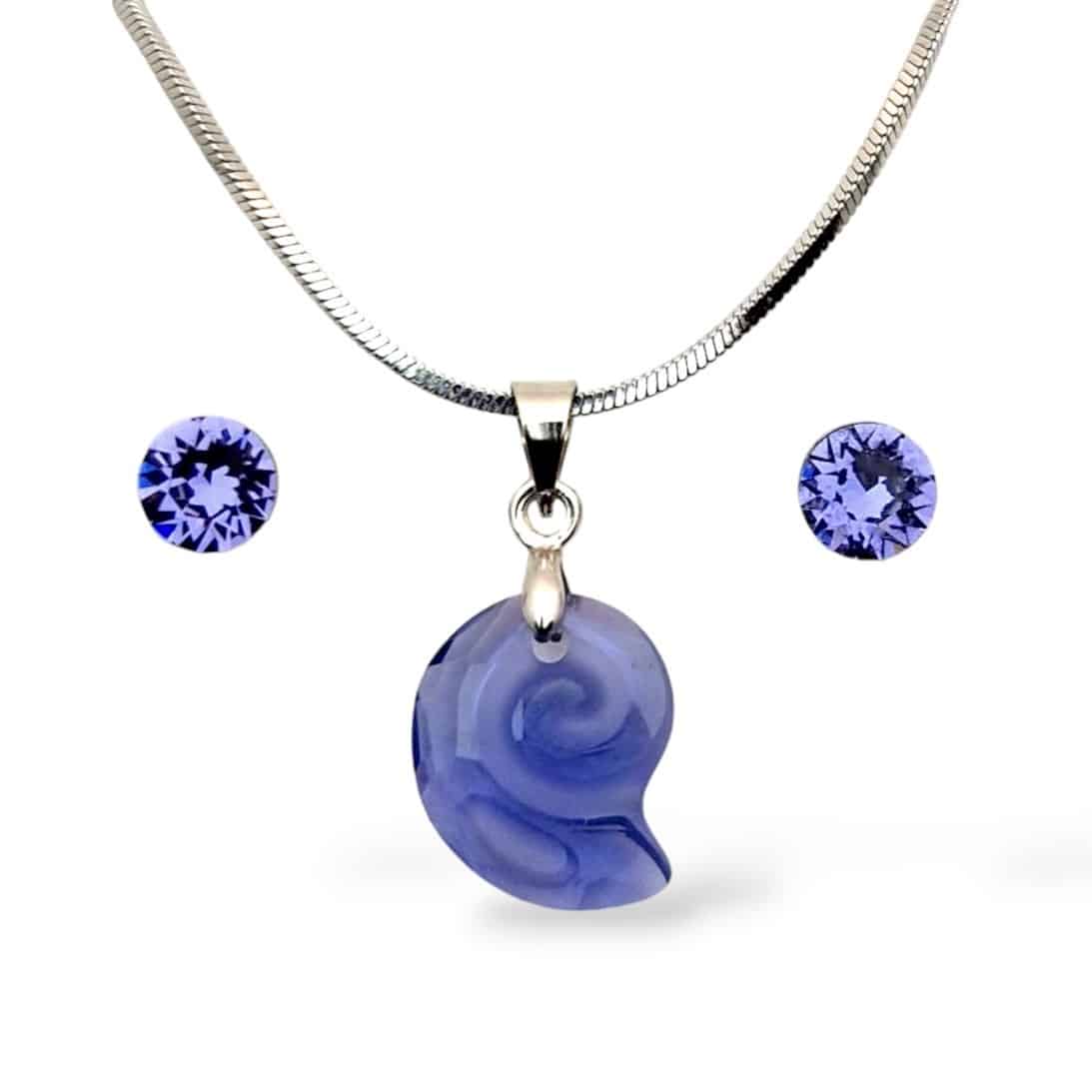 Swarovski kristályos ékszerszett “Pisces” – Csiga 14 mm, Lila Tranzanite ajándék díszdobozban: