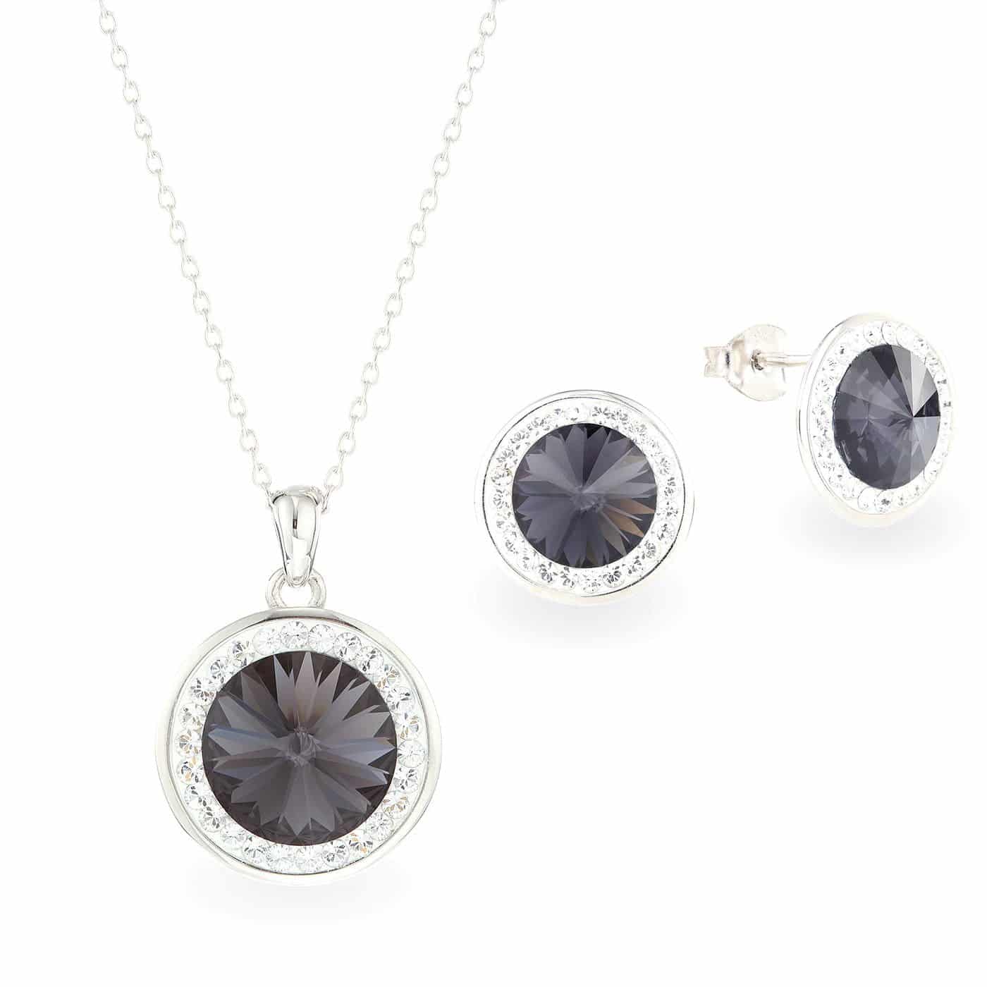 Swarovski kristályos ezüst ékszer szett csillogó nap medállal ajándék díszdobozban – Szürke