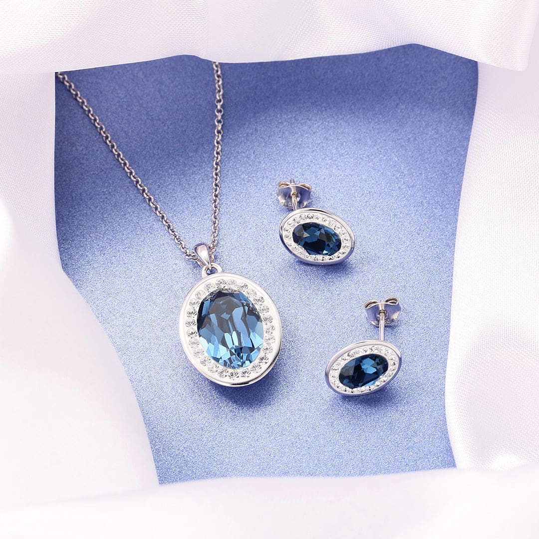 Swarovski kristályos ezüst ékszerszett – Brilliance Oval Kék – ajándék díszdobozban