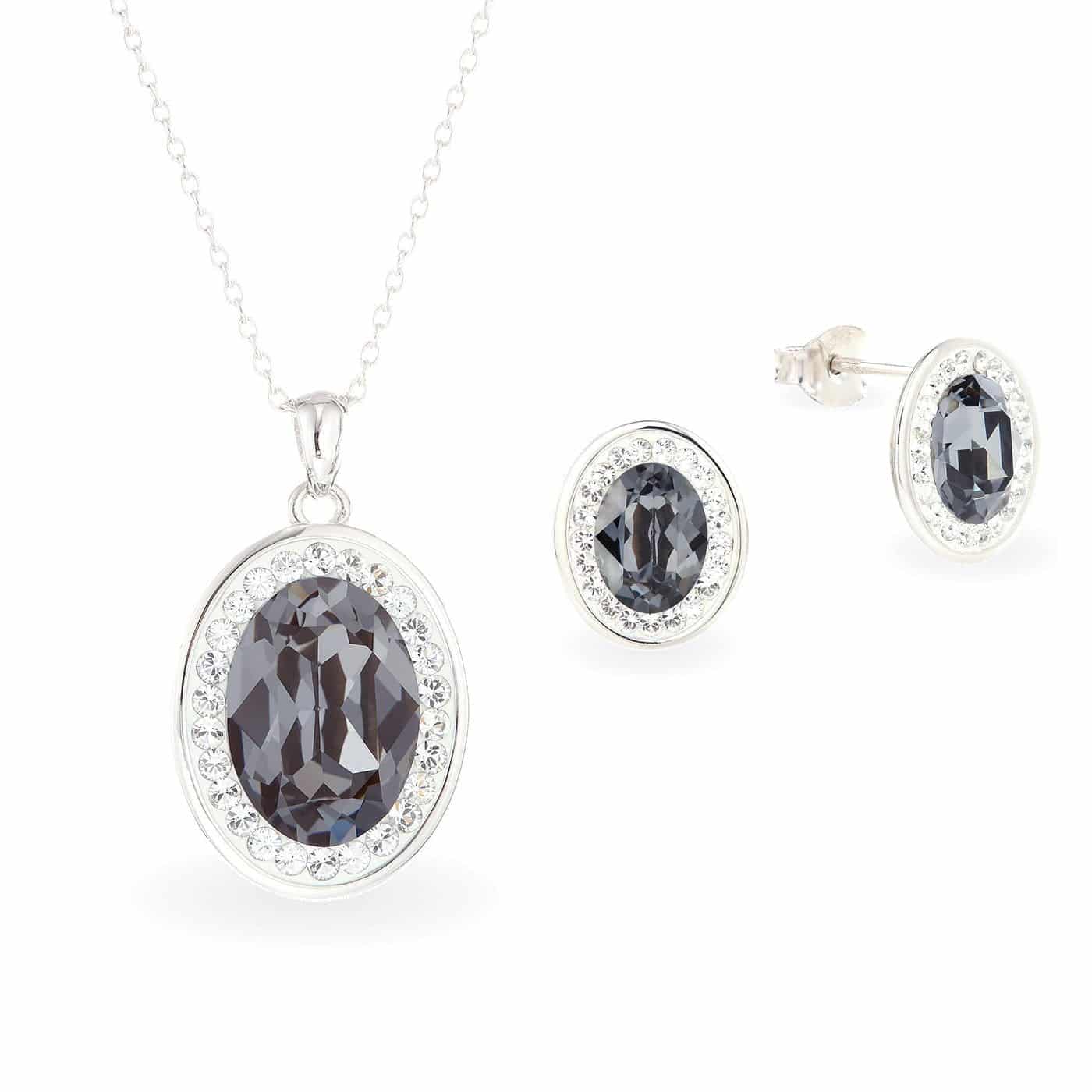 Swarovski kristályos ezüst ékszerszett – Brilliance Oval Silver Night – ajándék díszdobozban