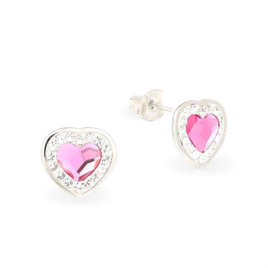 Swarovski kristályos ezüst fülbevaló – Brilliance Heart Pink- ajándék díszdobozban
