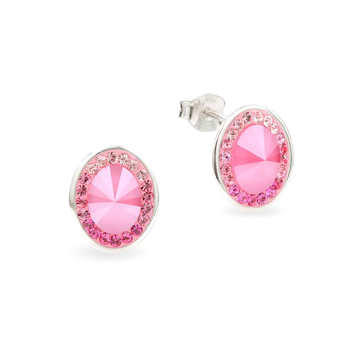 Swarovski kristályos ezüst fülbevaló – Brilliance Oval Rózsaszín – ajándék díszdobozban