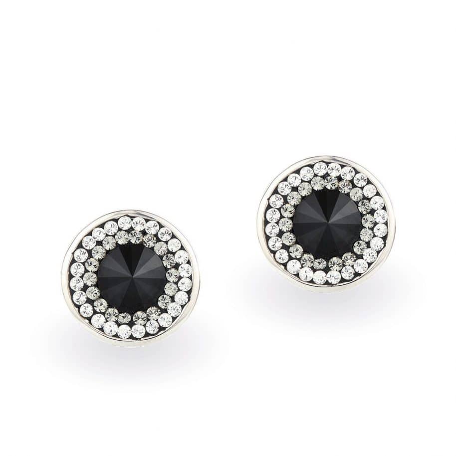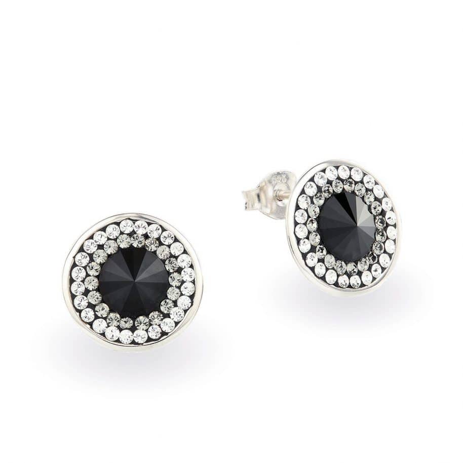 Swarovski kristályos ezüst fülbevaló – Rivoli Orbit Fekete – ajándék díszdobozban