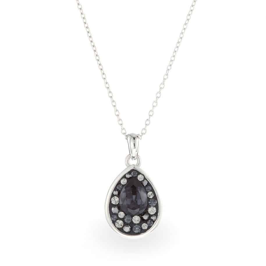Swarovski kristályos ezüst nyaklánc – Raindrop Fekete – ajándék díszdobozban