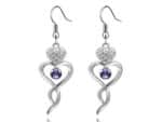 Végtelen Szív lila kristályos fülbevaló ajándék díszdobozban