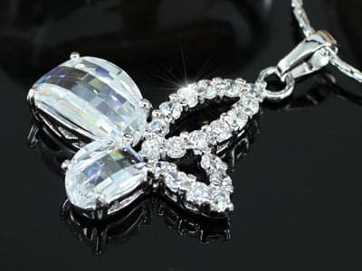 Pillangó CZ szimulált gyémánt medál nyaklánc ajándék díszdobozban