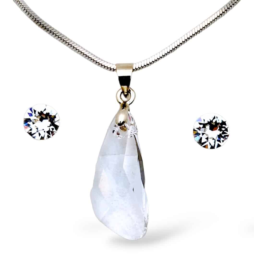 – A szett 23 mm-es Swarovski® kristállyal készült medálból és 6 mm átmérőjű Swarovski® kristállyal készült fülbevalóból áll