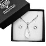 – A szett 23 mm-es Swarovski® kristállyal készült medálból és 6 mm átmérőjű Swarovski® kristállyal készült fülbevalóból áll