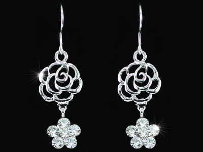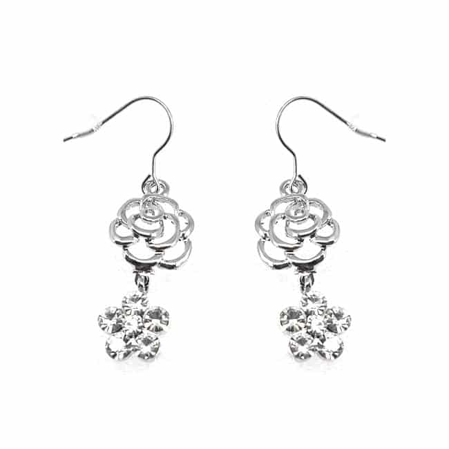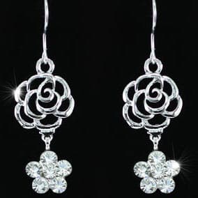 Virágos fehérarany színű kristályosfülbevaló ajándék díszdobozban