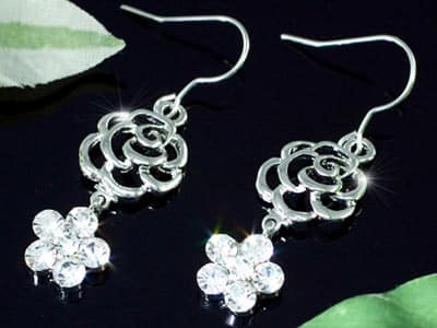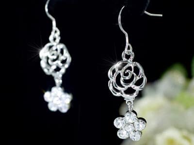 A virág alakú, 3.5 karátos szimulált gyémántok (cz cirkónia kristály) elegáns és csillogó megjelenést kölcsönöznek viselőjének. A lenyűgöző kristály szín tovább emeli az eleganciát és az egyediséget, miközben a fülbevaló varázslatos fénye minden tekintetet magára von.