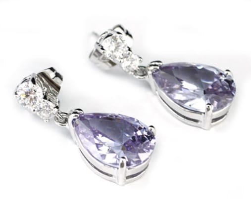 Exkluzív Design: Ezek a fülbevalók lenyűgözően csillogó 4 karátos lila szintetikus zafír kristályokkal díszítettek, melyek káprázatos csepp alakjukkal és tündöklő színükkel azonnal magukra vonják a figyelmet.