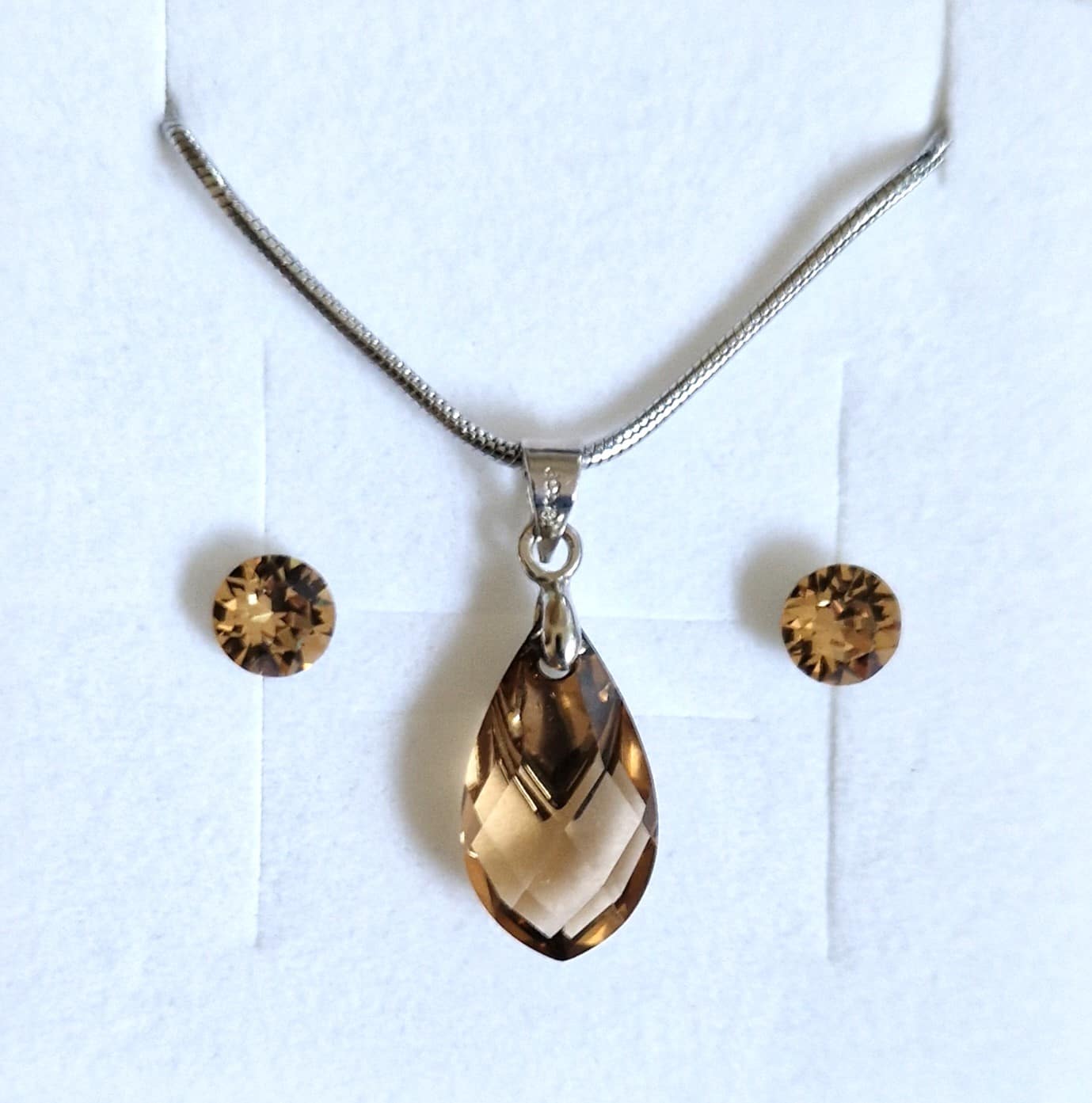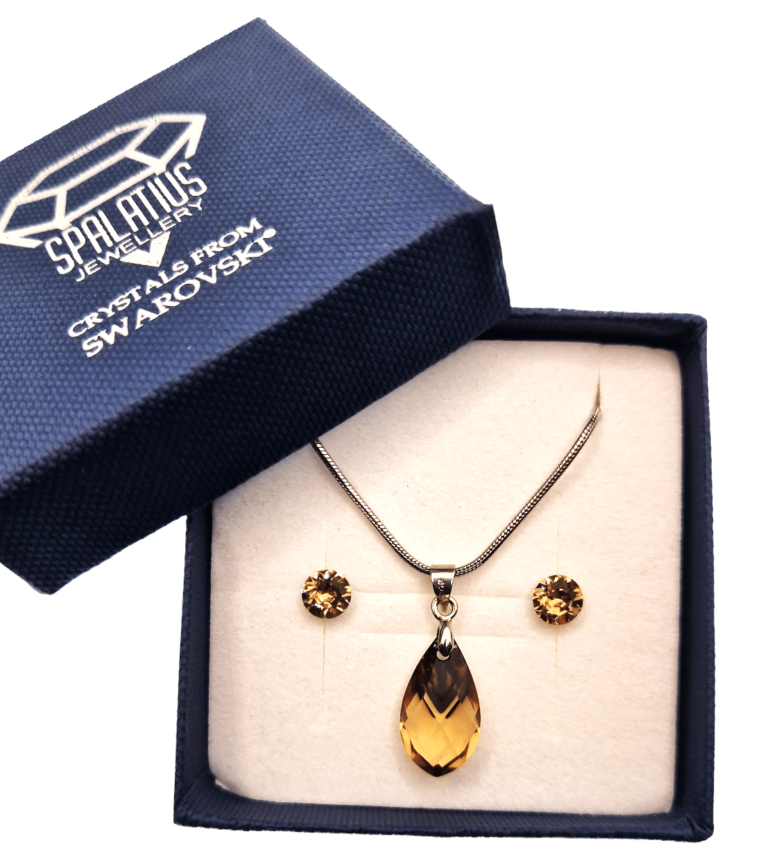 Swarovski® kristályos ékszerszett – Pear – Shaped 18 mm, Colorado Topaz -Light Chrome + díszdoboz