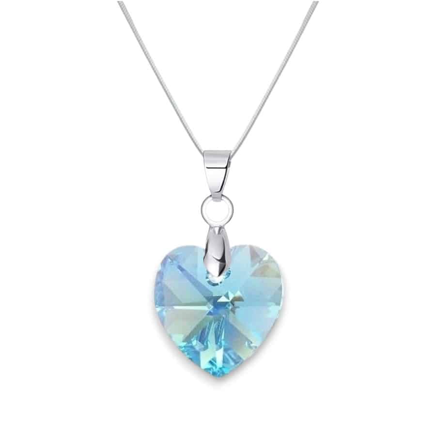18 mm Szív Swarovski kristályos ezüst nyaklánc – Aquamarine – 925 Ezüst ékszer