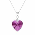 18 mm Szív Swarovski kristályos ezüst nyaklánc – Fuchsia – 925 ezüst ékszer