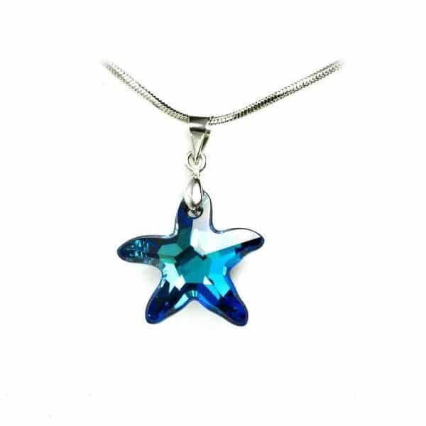 Swarovski® kristályos nemesacél nyaklánc – 20 mm – Tengeri csillag – Bermuda Blue