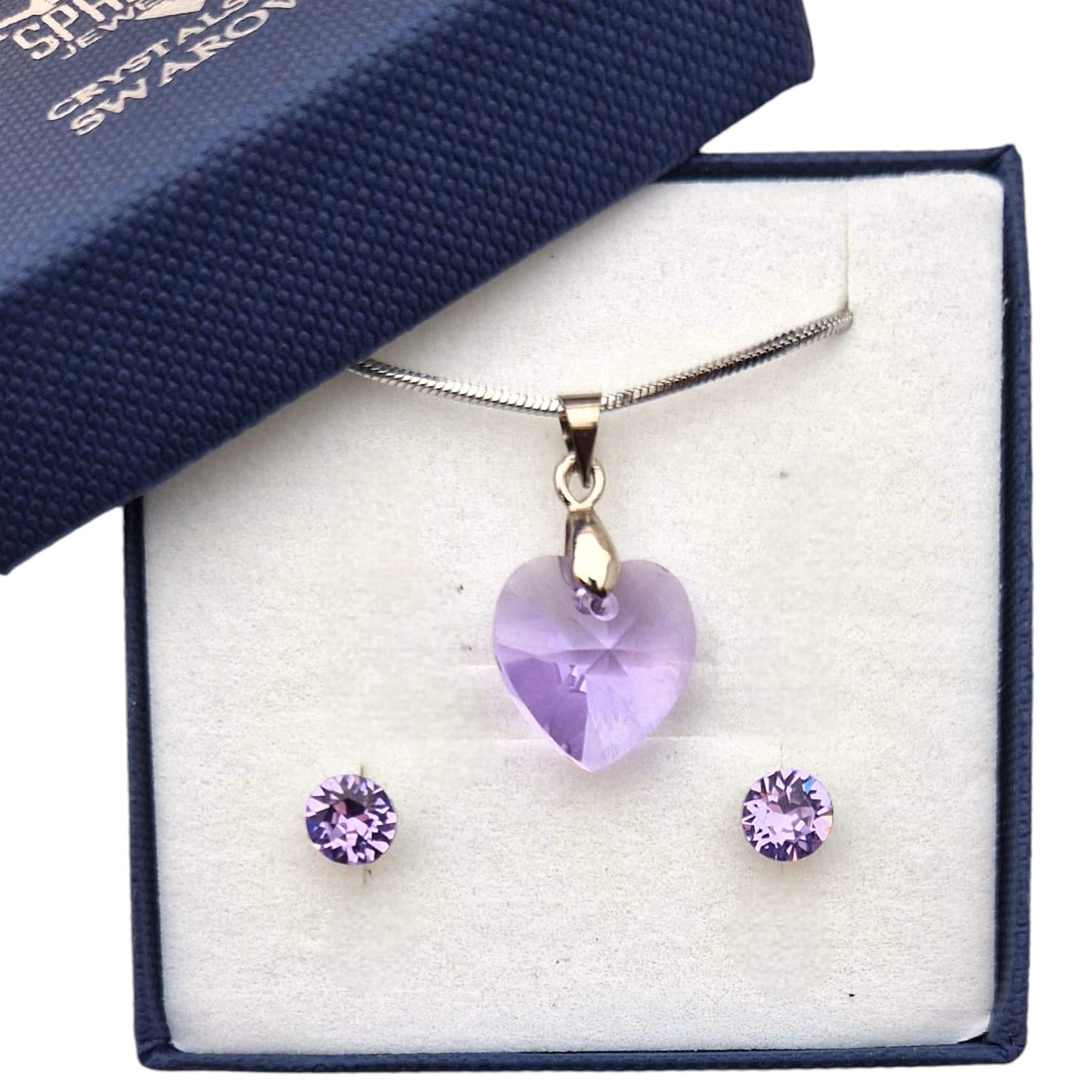 14 mm-es Szives Swarovski kristályos ékszerszett – Violet – ajándék díszdobozban