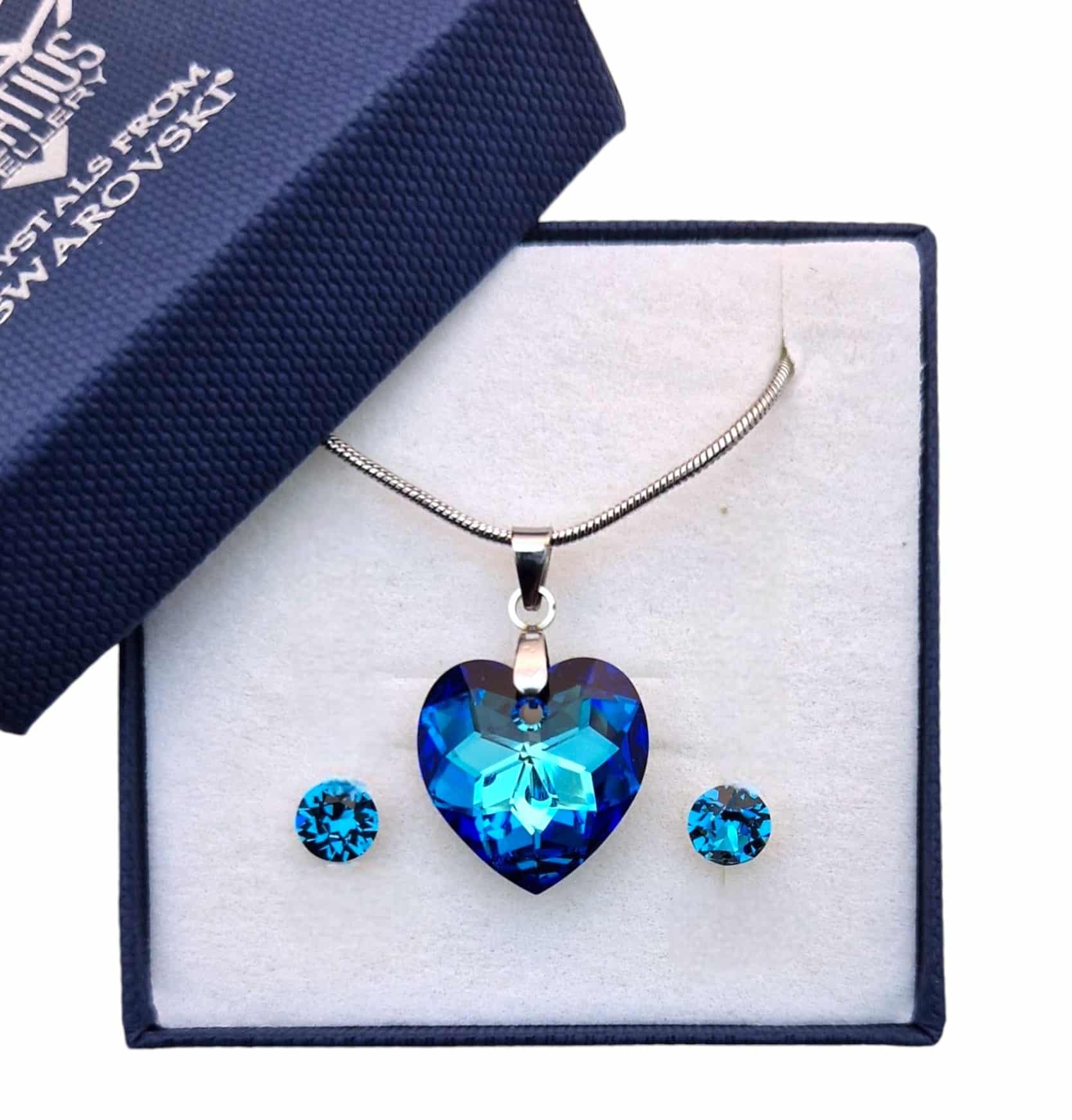 18 mm-es Szives Swarovski kristályos ékszerszett – Bermuda Blue – ajándék díszdobozban