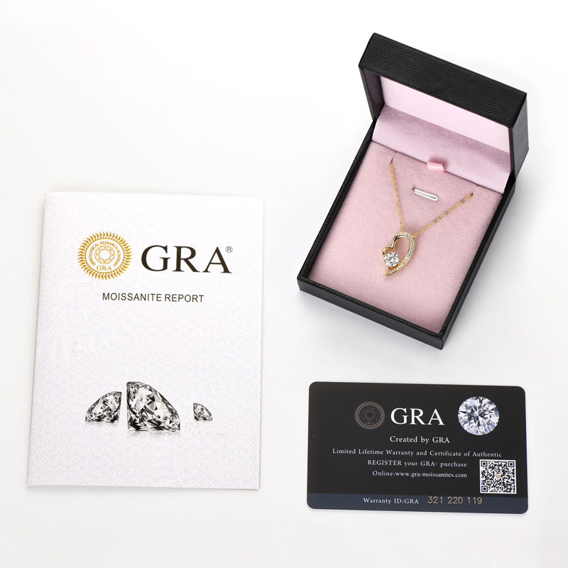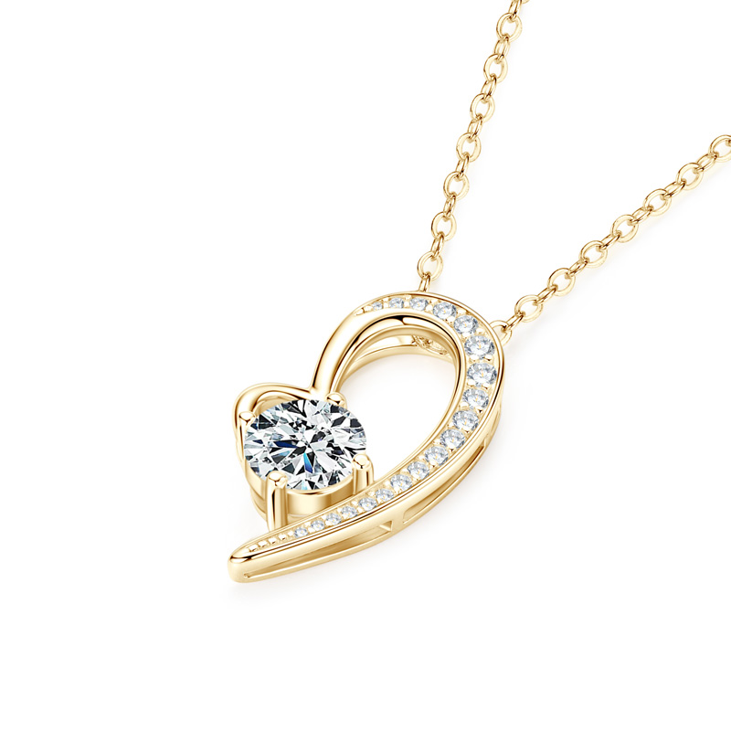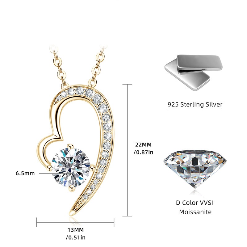 Szív 14K aranyozott ezüst nyaklánc 1 karátos Moissanite gyémánt köves medállal