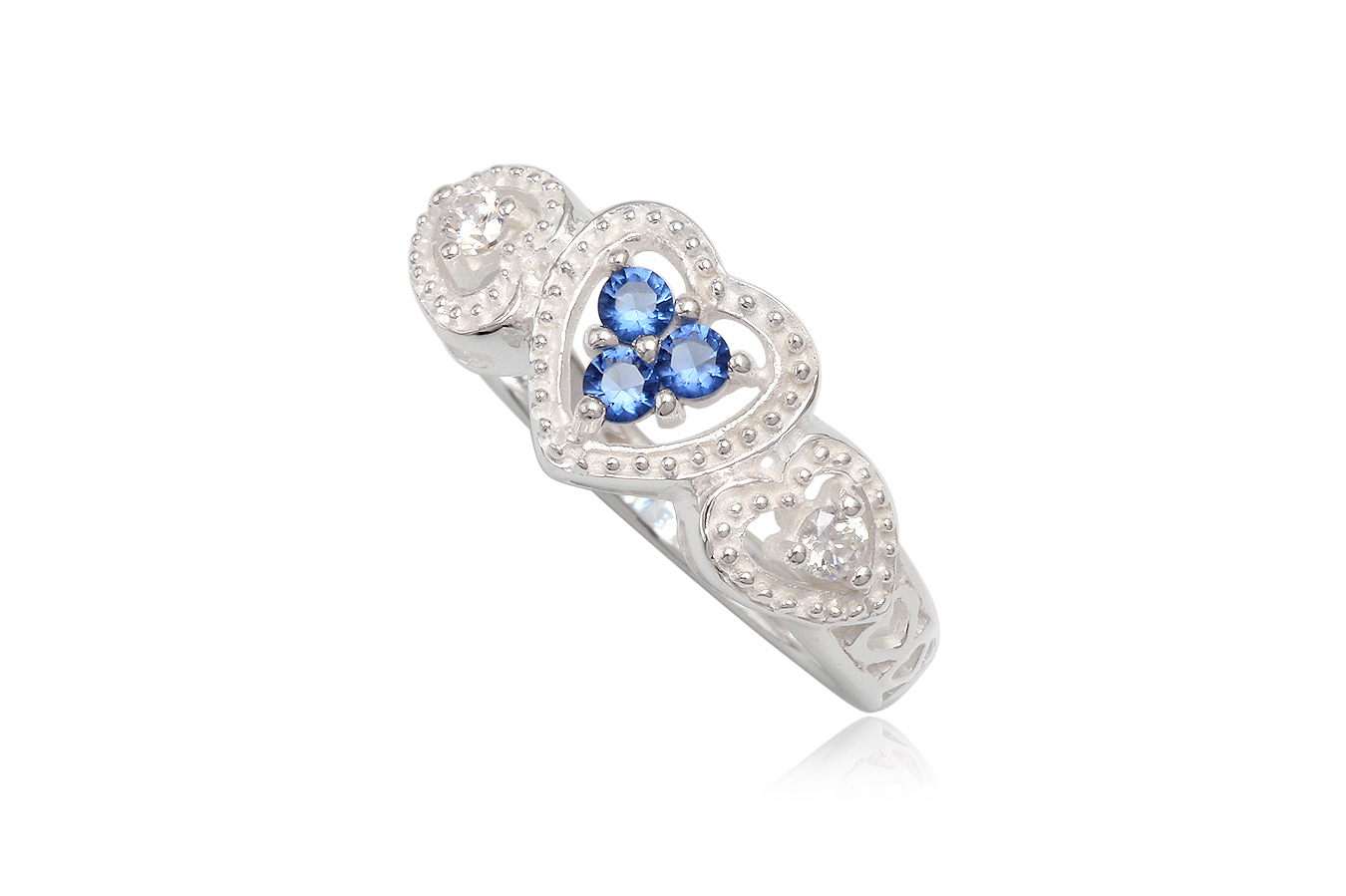Szív alakú ezüst gyűrű sötét kék cirkónia kristállyal