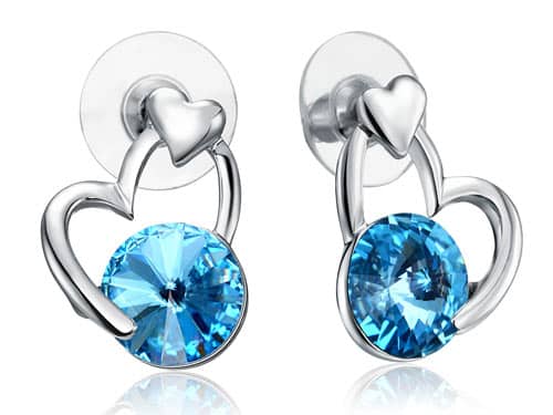 Swarovski kristályos szív alakú fülbevaló ajándék díszdobozban türkiz szinű kristállyal