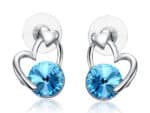 Swarovski kristályos szív alakú fülbevaló ajándék díszdobozban türkiz szinű kristállyal