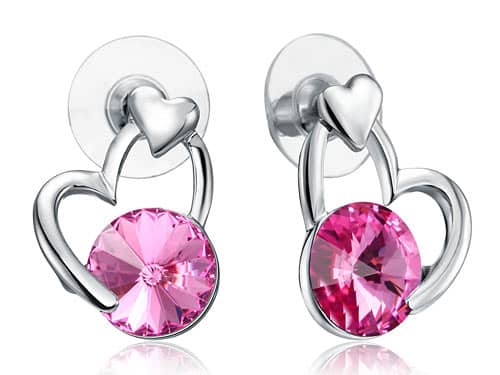 Swarovski kristályos szív alakú fülbevaló ajándék díszdobozban pink szinű kristállyal