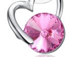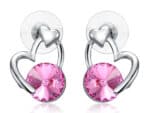 Swarovski kristályos szív alakú fülbevaló ajándék díszdobozban pink szinű kristállyal