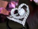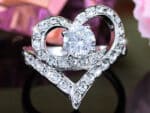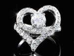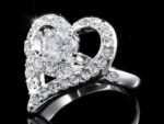 Szív alakú kristályos gyűrű fehér arany színben: