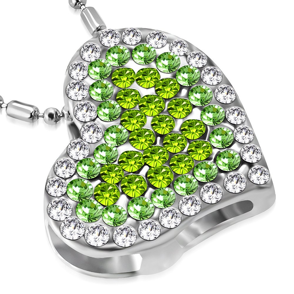 Szív alakú, zöld kristállyal ékesített női nyaklánc