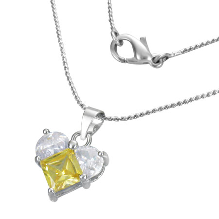 Ezüst színű nyaklánc, szív alakú cirkónia kristály medállal
