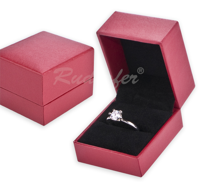 A megvilágított LED-es díszdoboz szív alakú műanyagból készült, ferde élekkel. Sima felületű és matt fekete színű. A doboz belseje finom bársony textúrájú fekete párnával van bélelve, és az ékszerek tartására szolgáló központi bevágással. A párnát a doboz fedelén található lámpa világítja meg, amely kinyitva közvetlenül az ékszerre világít.