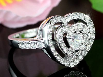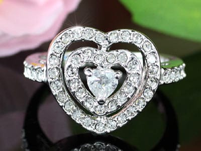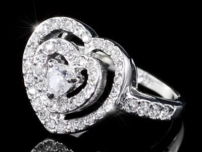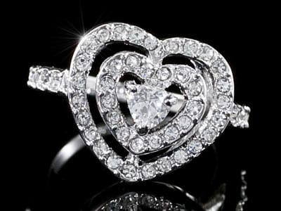 Szívbe Szív női kristályos gyűrű fehér arany színben: