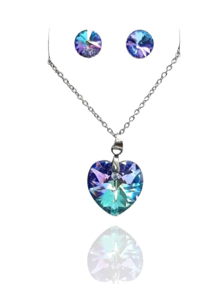 Szives Exkluzív Kristályos Nyaklánc és Fülbevaló Szett ajándék díszdobozban – Színjátszó levendula