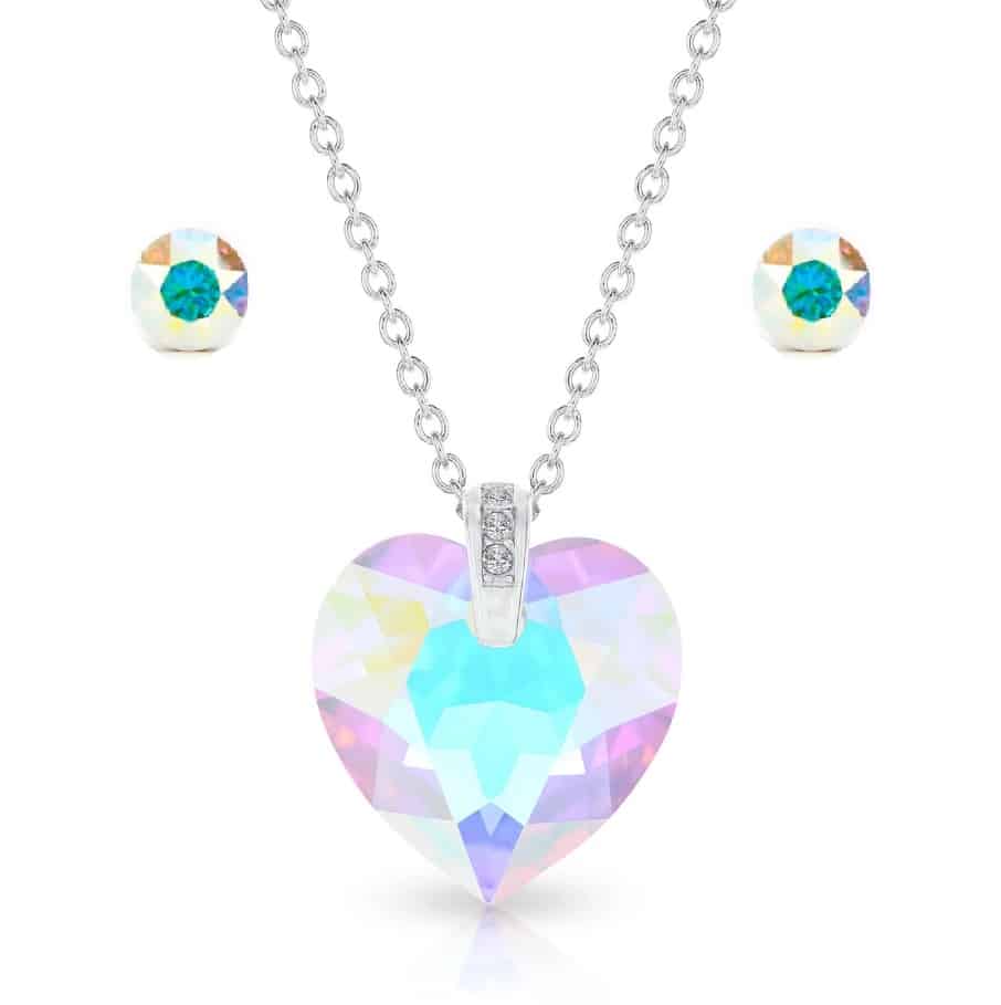 Szives swarovski kristályos ezüst ékszer szett ajándék díszdobozban – Crystal AB