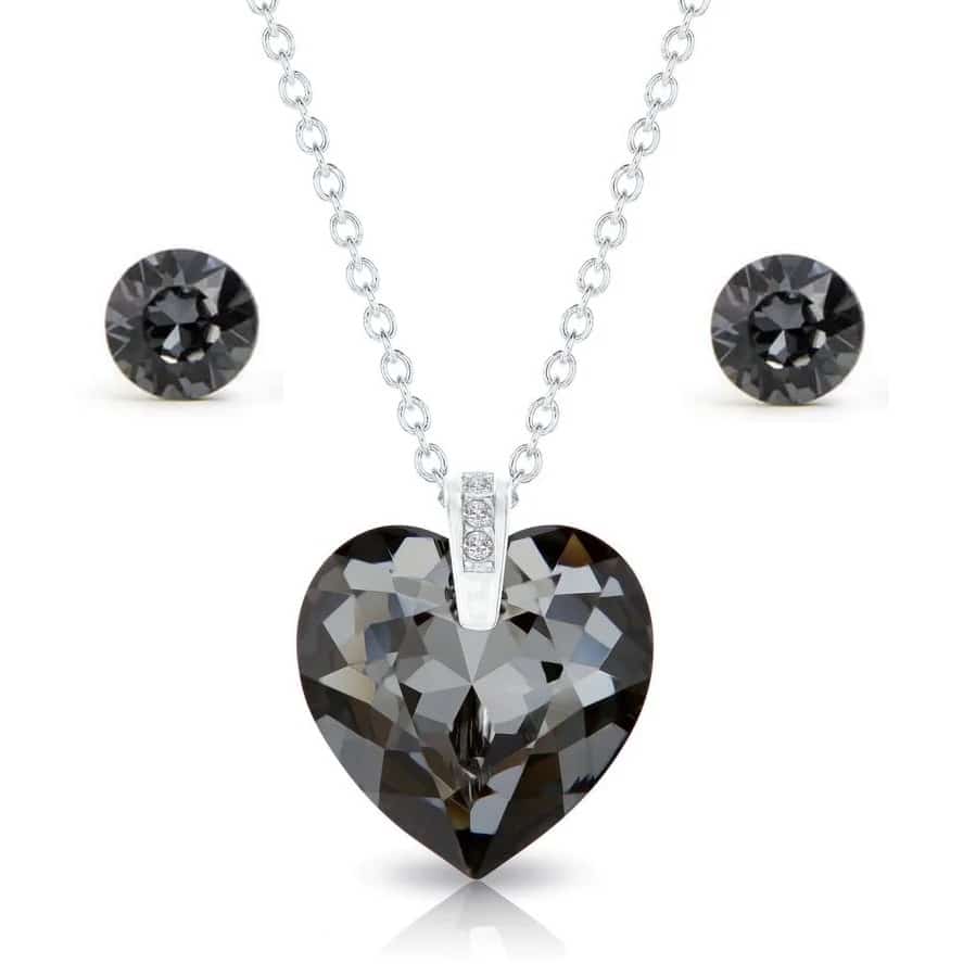 Szives swarovski kristályos ezüst ékszer szett ajándék díszdobozban – Sötét szürke