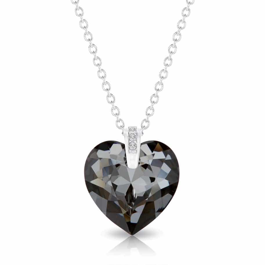 Szives swarovski kristályos ezüst nyaklánc ajándék díszdobozban – Sötét szürke