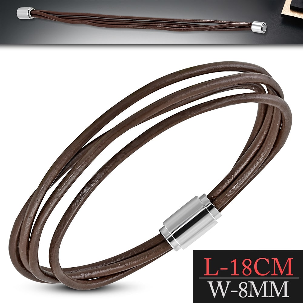 Világos barna színű bőr karkötő, mágneses nemesacél zárral