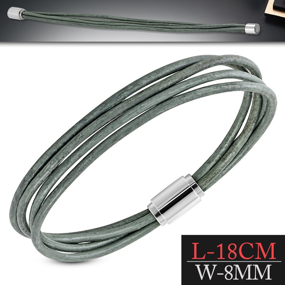 TAKASI – Szürke több soros kaucsuk karkötő, nemesacél zárral