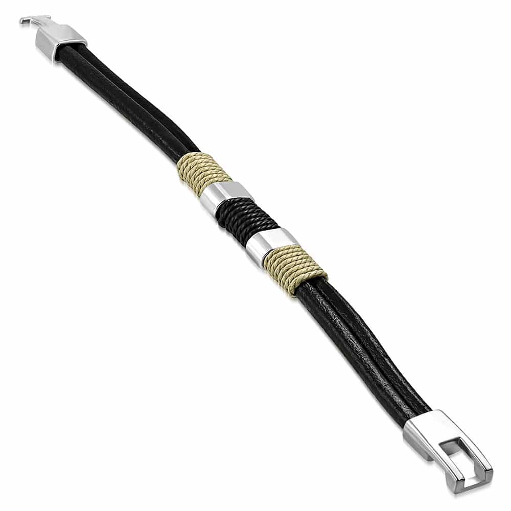 Fekete színű, fonott bőr karkötő nemesacél dísszel, mágneses nemesacél zárral