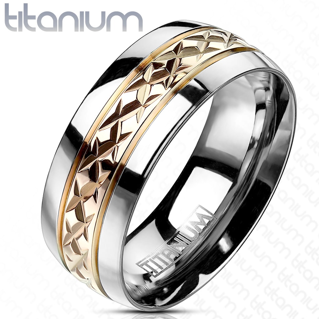 Gyönyörű titanium karikagyűrű rózsaarany színben, amely nem csak karikagyűrűnek hordható ékszer, egymagában is gyönyörű és tartós nemesacél gyűrű.