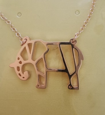 Rózsaarany színű minimál stílusú nyaklánc elefánt alakú medállal