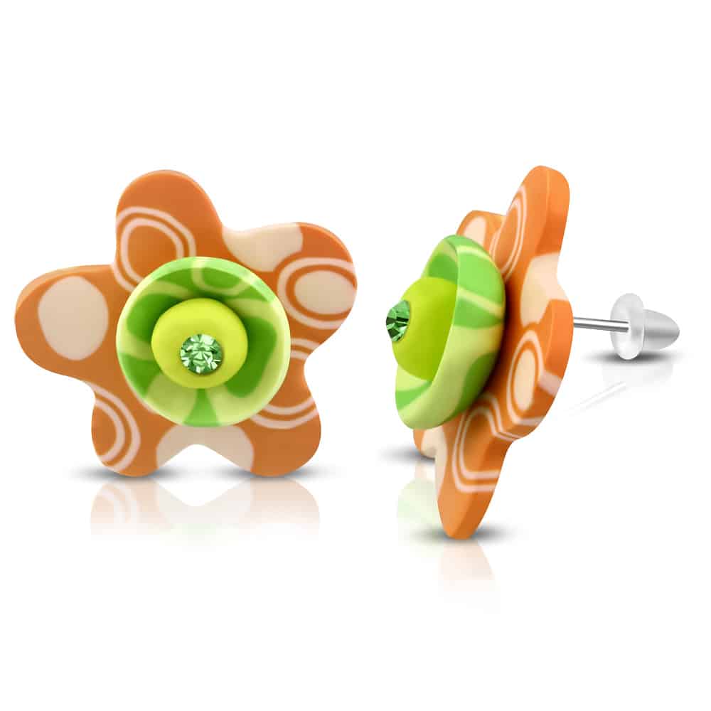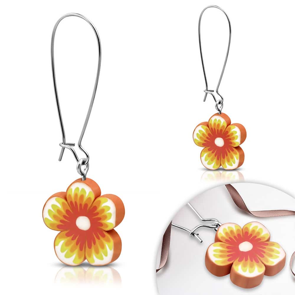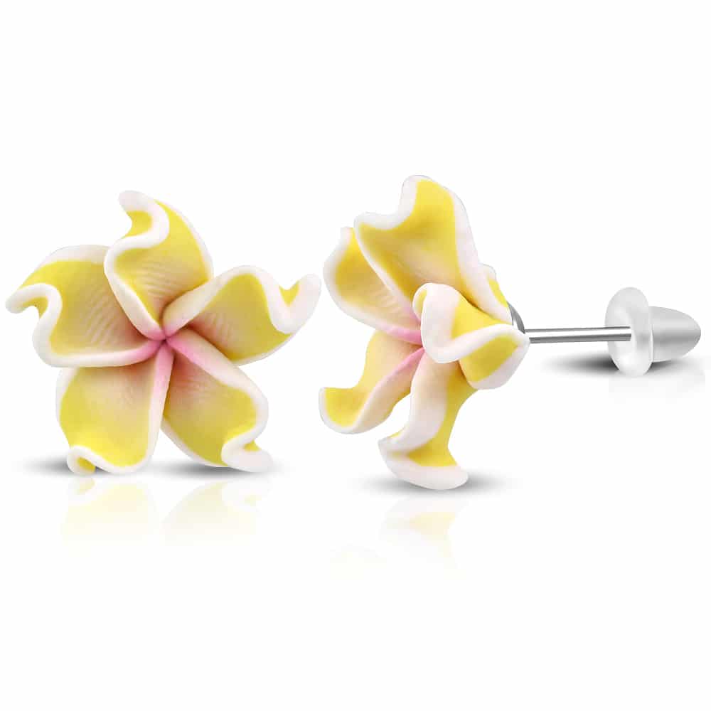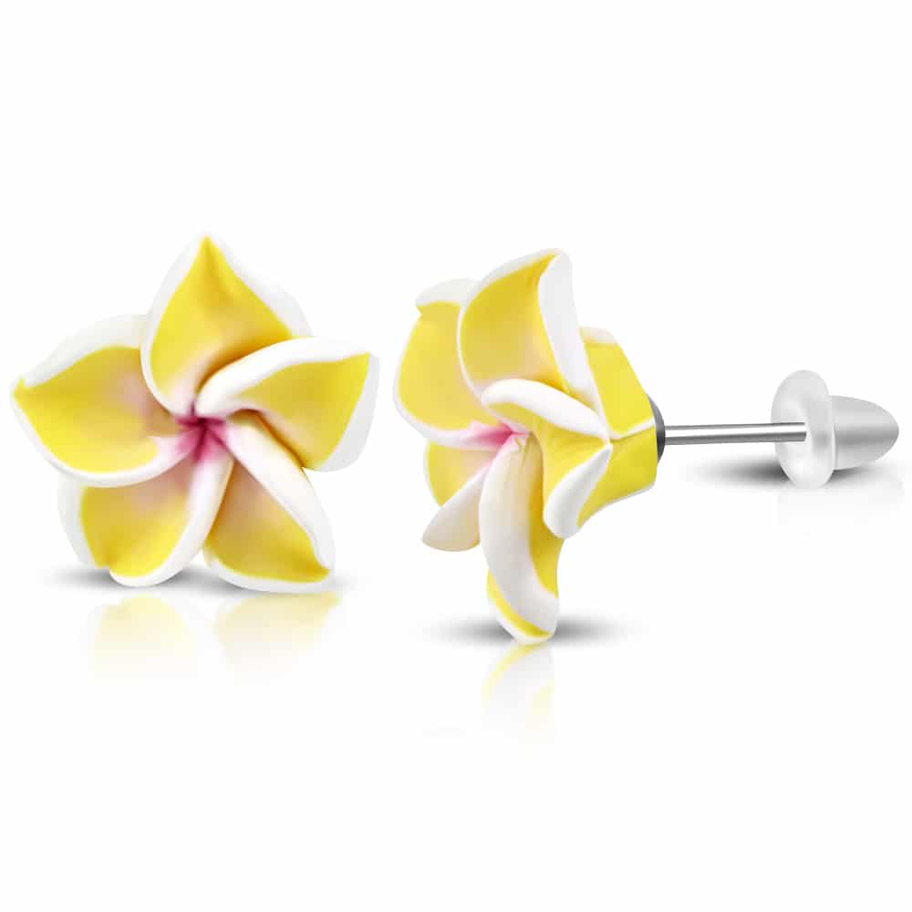 Sárga-fehér-rózsaszín pluméria virág fülbevaló