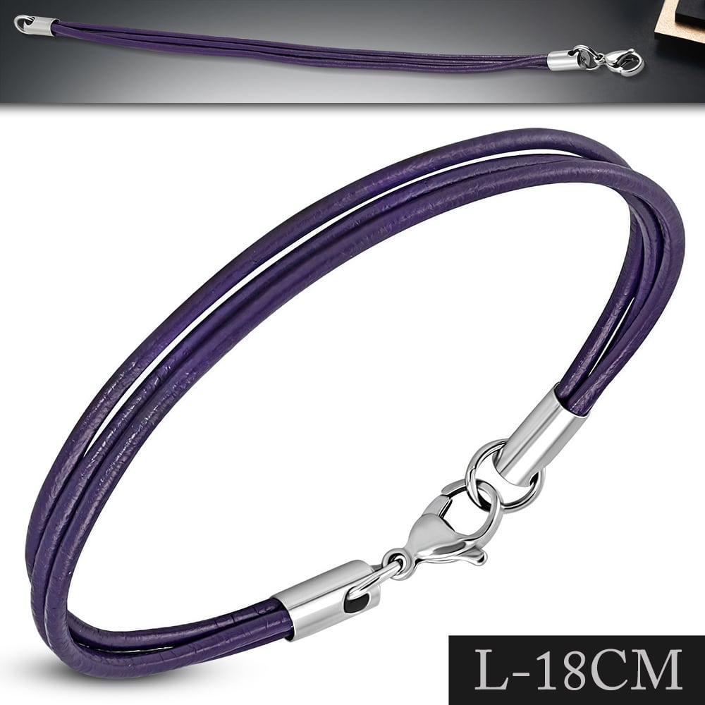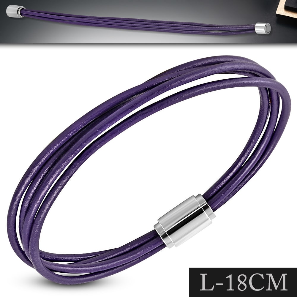 LILA színű, fonott bőr ékszer, nemesacél zárral