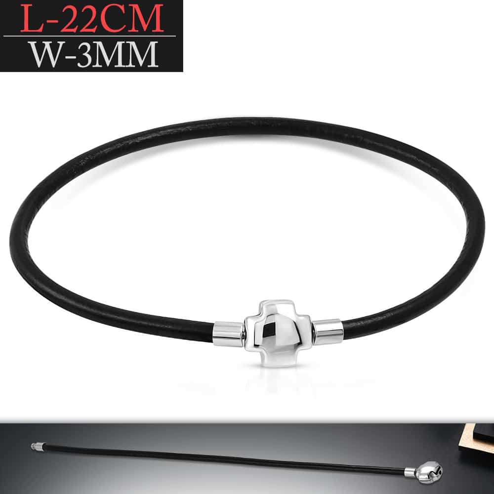 Theuri – fekete kaucsuk karkötő ezüst színá zárral