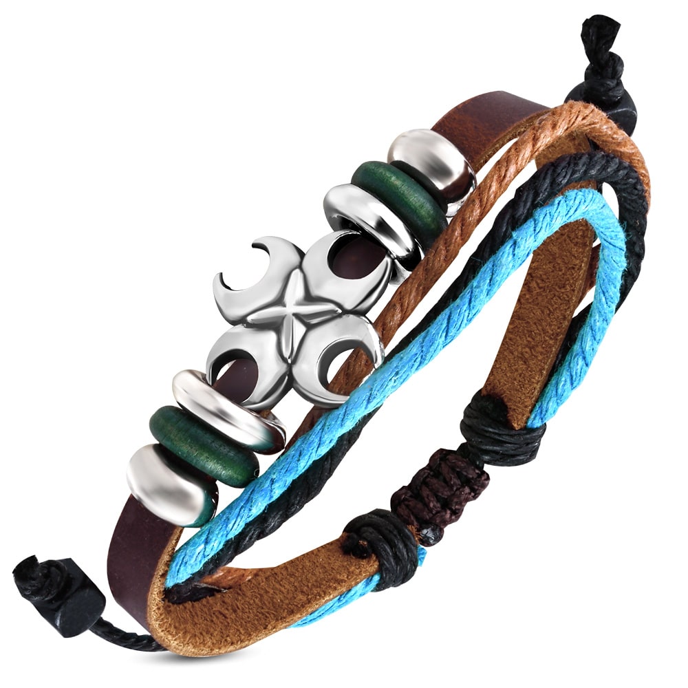 BGO Zöld színű fonott bőr karkötő nemesacél dísszel és zárral