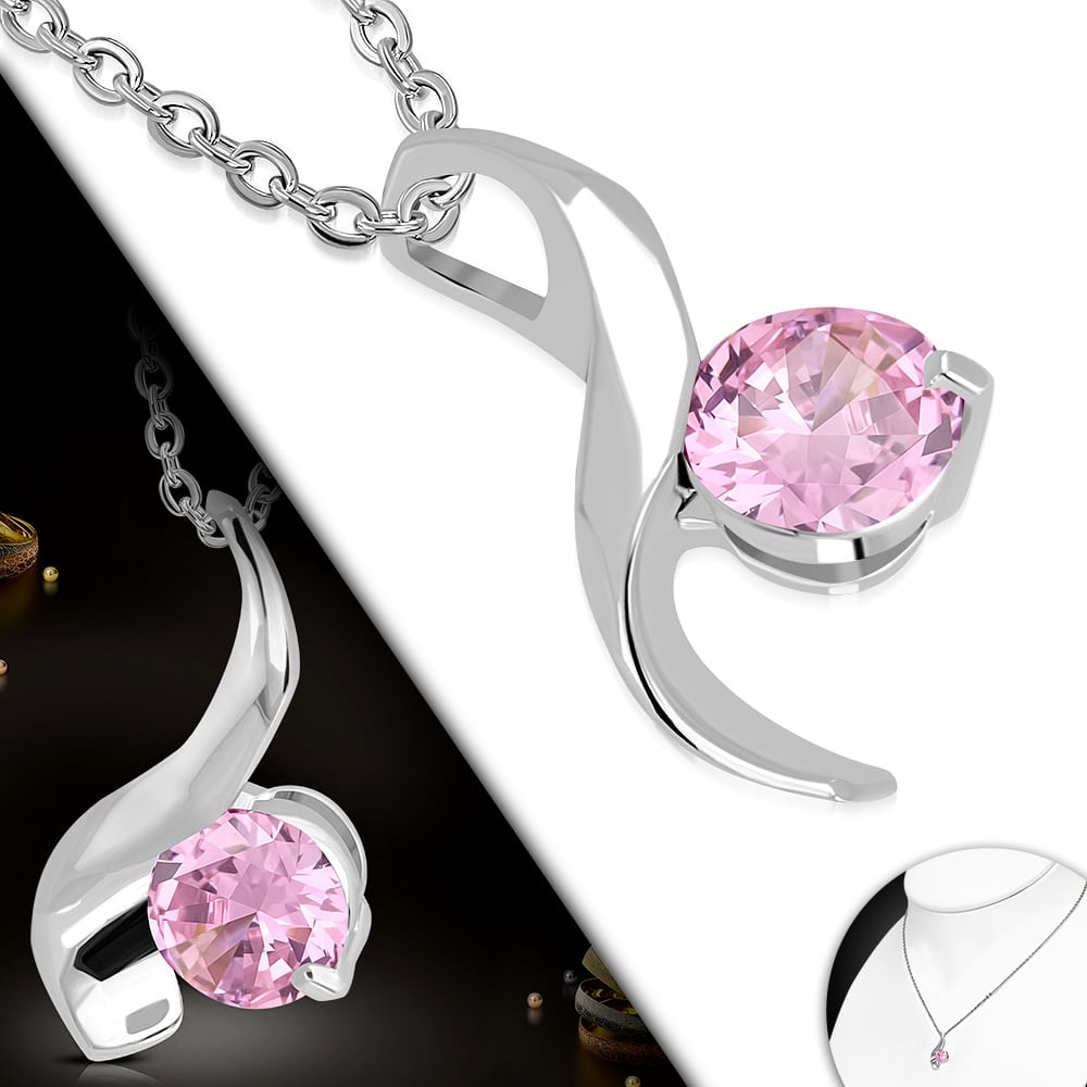 Ezüst színű nyaklánc, rózsaszín cirkónia kristályos medállal