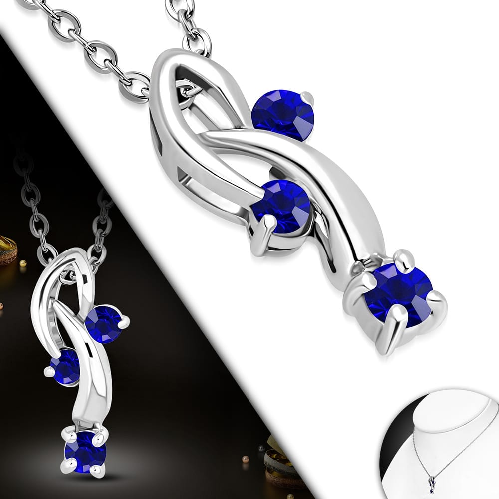 Ezüst színű nyaklánc, sötétkék cirkónia kristályos medállal